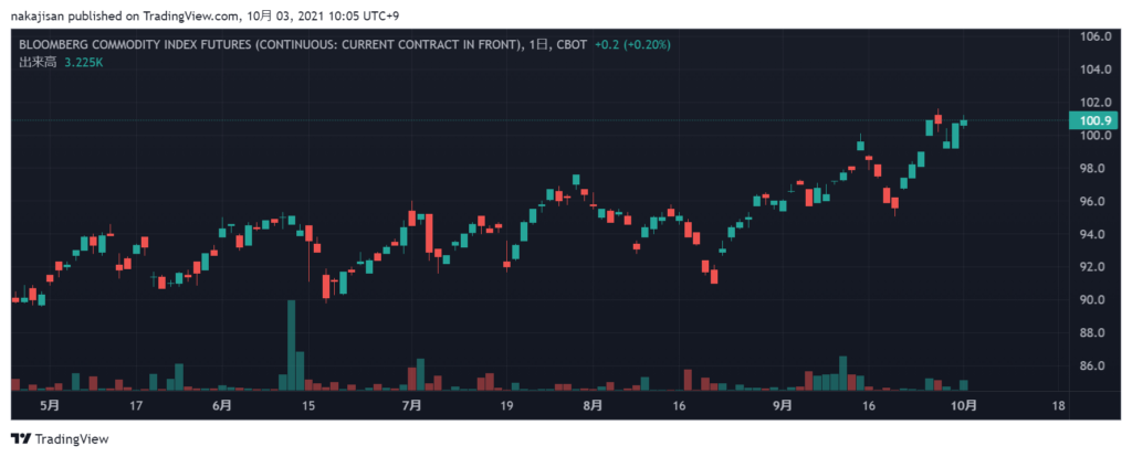 以下に、 ブルンバーグコモディティ価格指数のグラフを示します