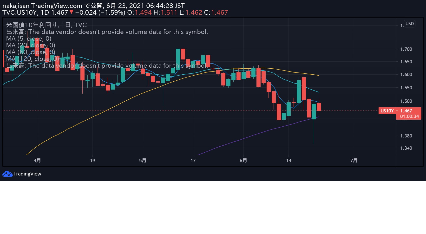 ~資産運用のヒント~ 米国国債10年金利の分析 2021/6/23朝