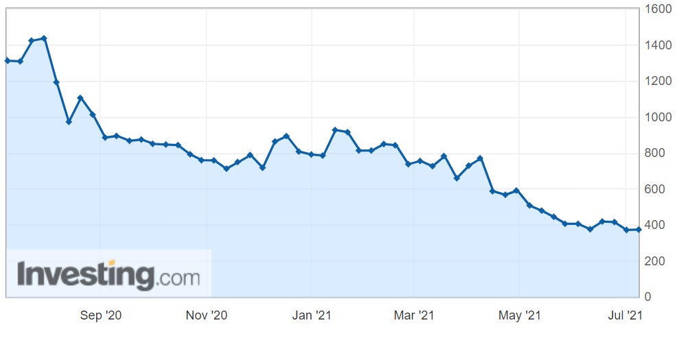 7/11以降、上乗せ措置が全米50州のうち半分の州で無くなるため、新規失業保険申請件数への影響、さらには、雇用が回復するか悪化するか、注目される。